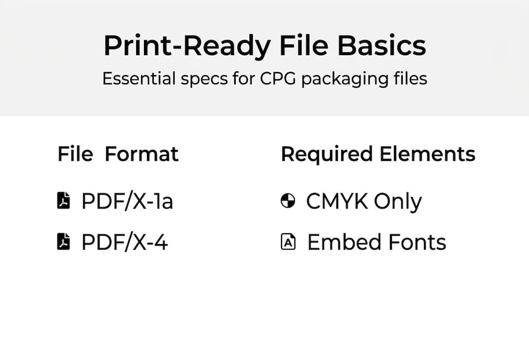 Sending a design file to your printer without checking if it's truly print-ready is one of the fastest ways to burn through your packaging budget. Many CPG founders assume that a polished-looking design file is the same as a production-ready one. It isn't. The gap between a "finished" design and a file your printer can actually use is where costly reprints, color shifts, and blurry logos live. This guide breaks down exactly what print-ready means for packaging, which file standards matter, and how you can get your files right the first time without paying agency rates to do it.