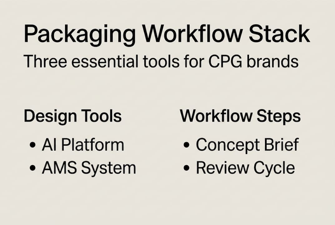 The core stack most founders need includes three layers. First, an AI-assisted design platform. Tools like Packify and DesignLumo are built specifically for packaging, and AI platforms like these enable print-ready files while boosting overall workflow efficiency. Second, a portfolio management system, often called an AMS (asset management system). This is where your approved files live, version history is tracked, and compliance requirements are met. Third, a short-run digital printing partner that accepts MOQs (minimum order quantities) as low as 100 units, so you can prototype concepts without committing to a full production run.