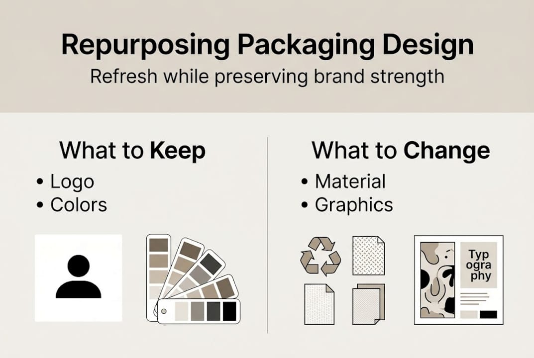 Your packaging design has real equity built into it. Customers recognize the color, the logo placement, the shape on shelf. But the design feels dated, costs are climbing, and sustainability pressure is real. Starting over from scratch is expensive and risky. The smarter play is strategic repurposing: refreshing what needs updating while protecting what earns you recognition and sales. This guide walks you through exactly how to assess, update, test, and roll out repurposed packaging designs in a way that saves money, reduces waste, and keeps your brand equity intact.